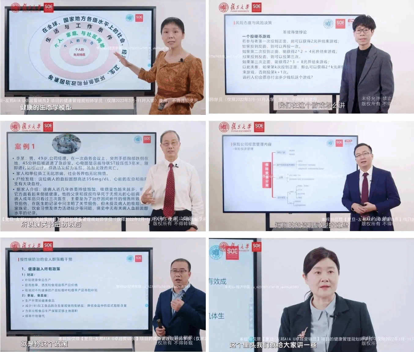 的各位老师在聚焦核心知识点的基础上,结合最新案例、数据与行业知识,推出2022更新版课程,满足学员们个人发展需求,帮助学员们进一步紧贴行业前沿和保险实践需要,提升寿险和健康管理领域专业化职业化水平,从而达到以知促行、以行促知、知行合一的有机统一。