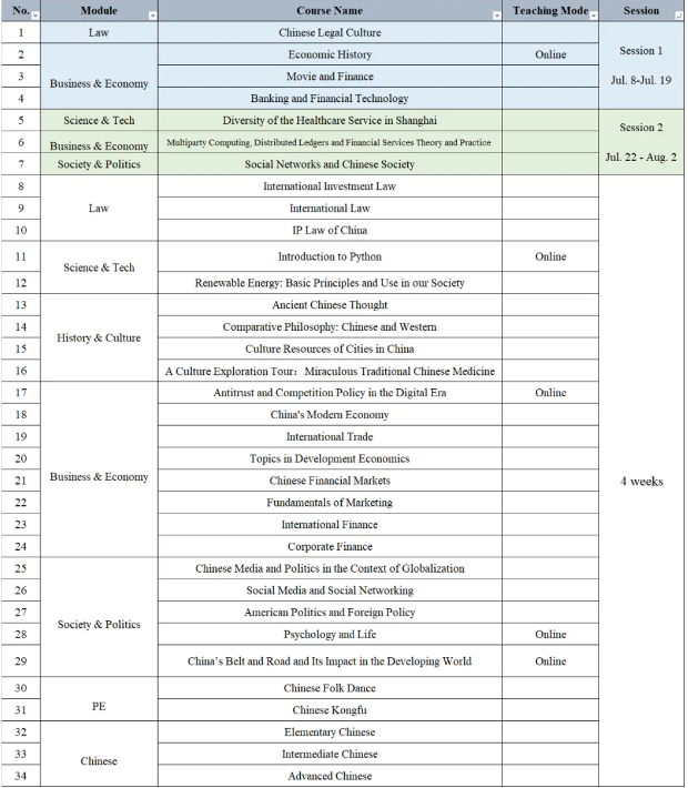 Session 1: 4 content courses offered from July 8-19, giving you the opportunity to dive into subjects like Economic History, Chinese Legal Culture, Movie and Finance, and Banking and Financial Technology.