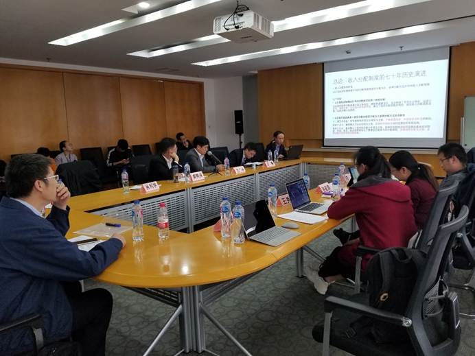 514会议室举行,王勇老师、郭熙保老师和万广华老师为本分论坛点评人,汇报人均来自中国社会科学院。论坛上半场吴利学老师和许明老师分别做了《经济增长研究七十年》和《开放发展研究七十年》的报告,吴老师通过经济体制、经济发展战略、增长方式以及技术进步四个维度对七十年来经济增长的相关研究进行了梳理并展望了未来中国经济的增长。许老师回顾了改革开放前的调节余缺论,并探讨了改革开放理论的深化和发展、中国参与全球化产业分工的新进展、构建国际经济新秩序的新进展等问题。论坛下半场覃毅老师、王秀丽老师和张航燕老师分别展示了《收入分配与社会公平研究七十年》、《宏观调控研究七十年》和《经济体制改革研究七十年》的研究成果,覃老师分享了按劳分配理论深化和收入分配制度演进、收入差距、基本公共服务均等化、反贫困政策和代际收入流动五个方面的研究。王老师回顾了过去七十年来对宏观调控的相关研究,总结了宏观调控的定义、目标与经验、宏观调控理论的研究范式、货币政策调控研究脉络和财政政策调控研究脉络并着重梳理了改革开放以来六次宏观调控的特征。张老师通过对改革模式与取向、价格改革、所有制改革、国有企业改革、经济管理体制改革以及要素市场改革六个领域中的重要文献进行梳理,试图挖掘出学术界一些重大思想对我国经济体制改革的催化或引导作用。经过参会者们的研究、点评、探讨和总结,学者们把新中国成立以来的发展上升到了理论层面,让大家对七十年来中国的经济增长、开放发展、收入分配与社会公平、宏观调控、经济体制改革等方面有了更加深入的了解。