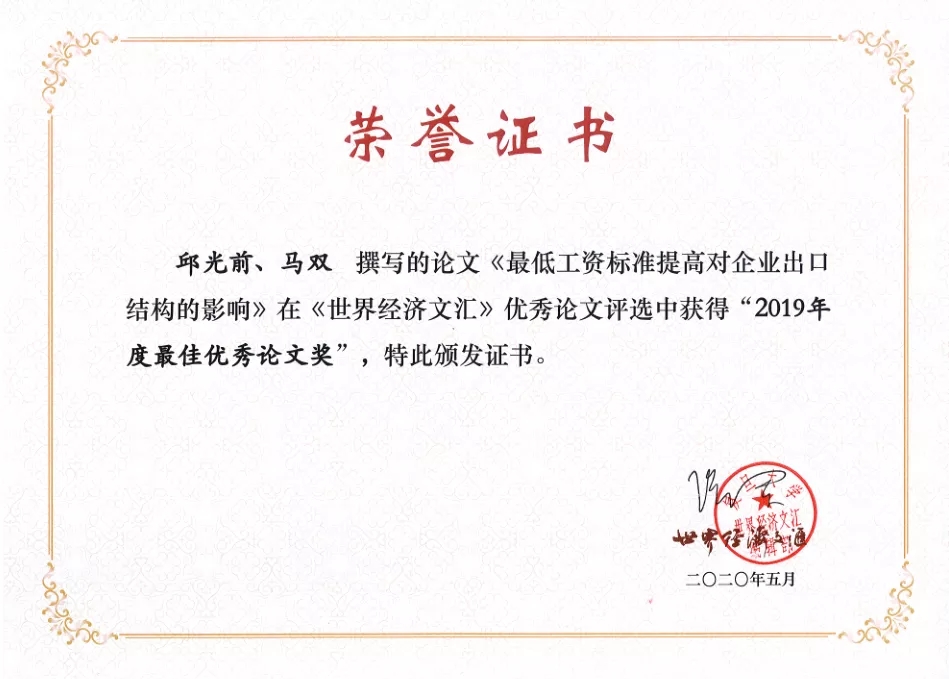 邱光前、马双,《最低工资标准提高对企业出口结构的影响》,《世界经济文汇》2019年第1期。
