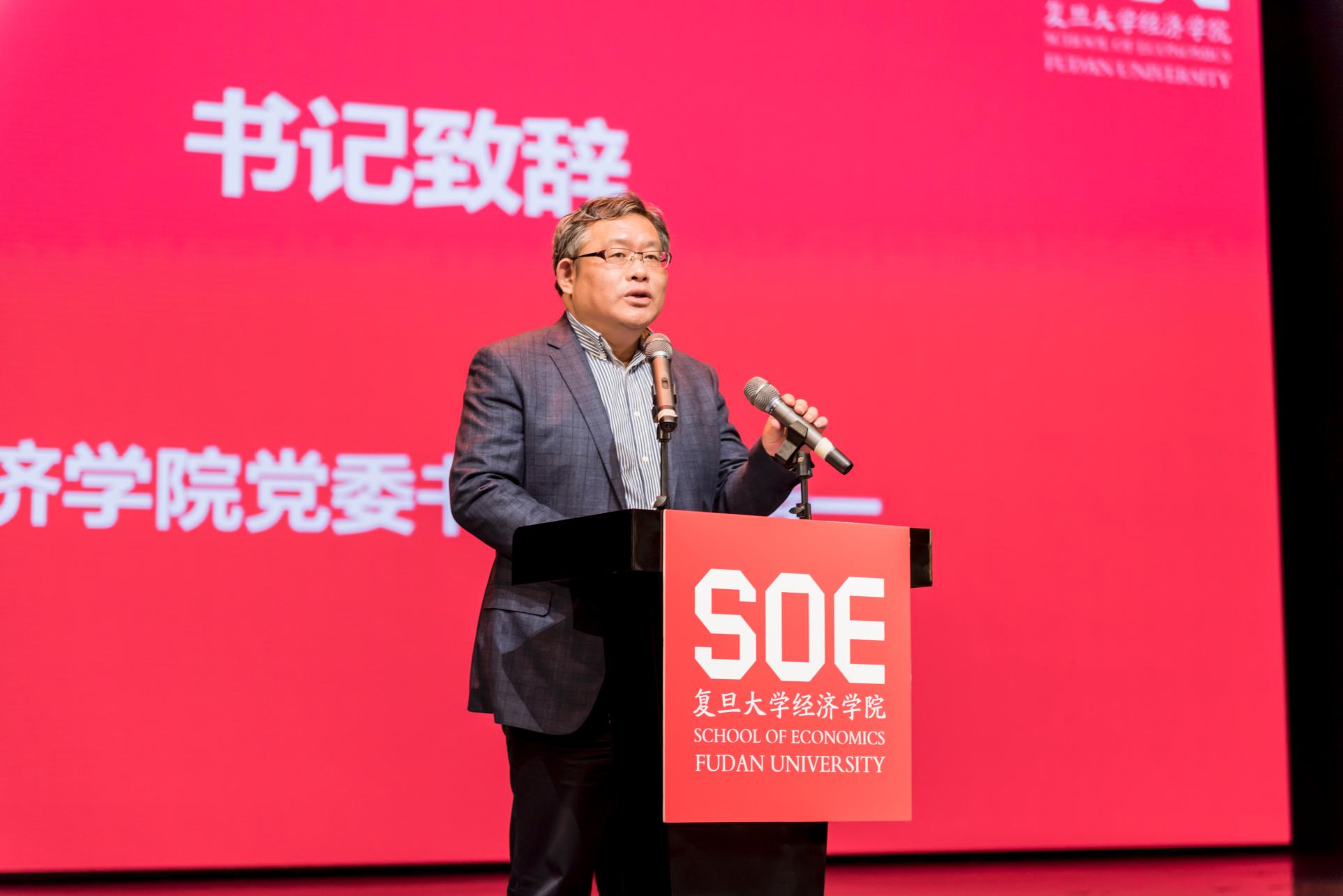 党委书记陈诗一老师首先致辞。陈诗一书记与新生同学们分享了即将度过百岁生日的张薰华老教授的故事。张薰华老教授见证了中国的崛起、腾飞和御书屋