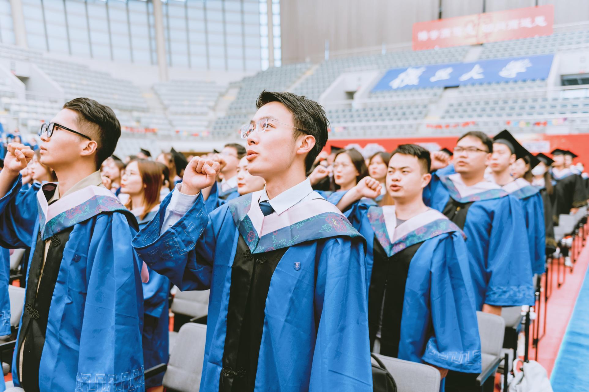 学生会执行主席申景允同学领誓,全体毕业生庄严宣誓,表达经院人经邦济世的理想与情怀,博学笃志的自律与上进,一起为国奋斗、永久奋斗,不负党和人民期待、不辜负伟大时代的决心和斗志。