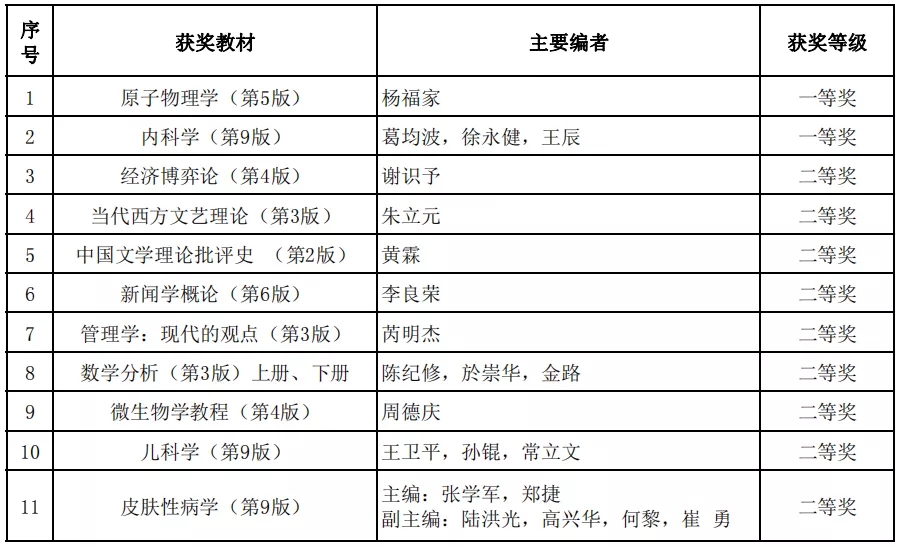 荣获全国优秀教材奖项共25项,其中高等教育类22项、基础教育类2项、职业教育与继续教育类1项。