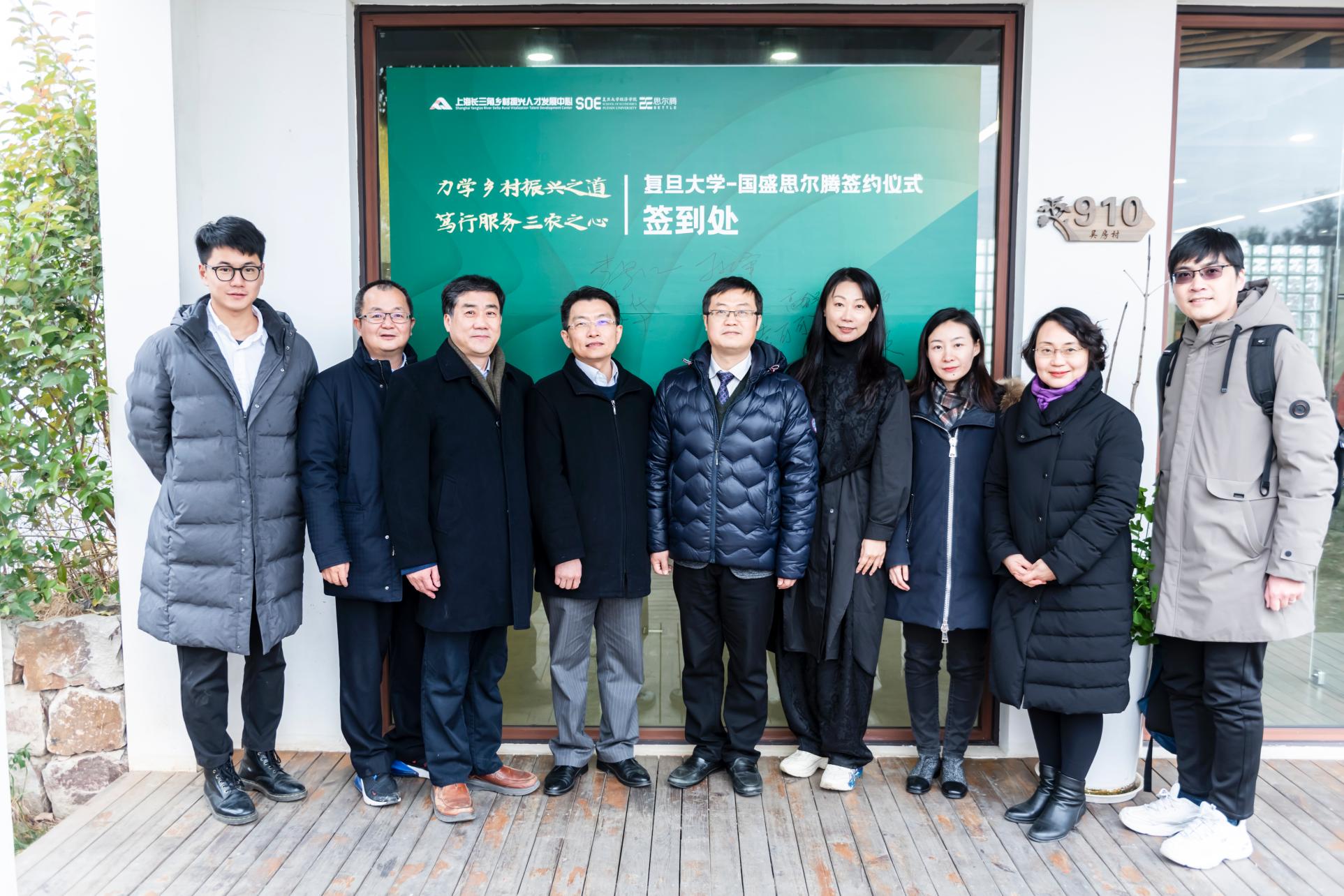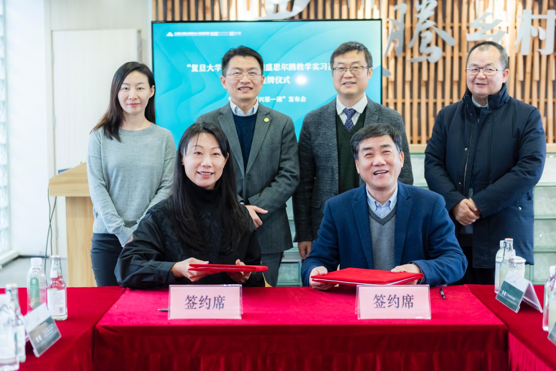 与国盛思尔腾在奉贤区吴房村举办共建本科教学实践基地签约和揭牌仪式,参加仪式的有国盛长三角基金董事长、思尔腾学院院长孙烽,思尔腾集团董事长、思尔腾学院常务副院长石强,思尔腾集团总经理、思尔腾学院副院长袁可可及御书屋