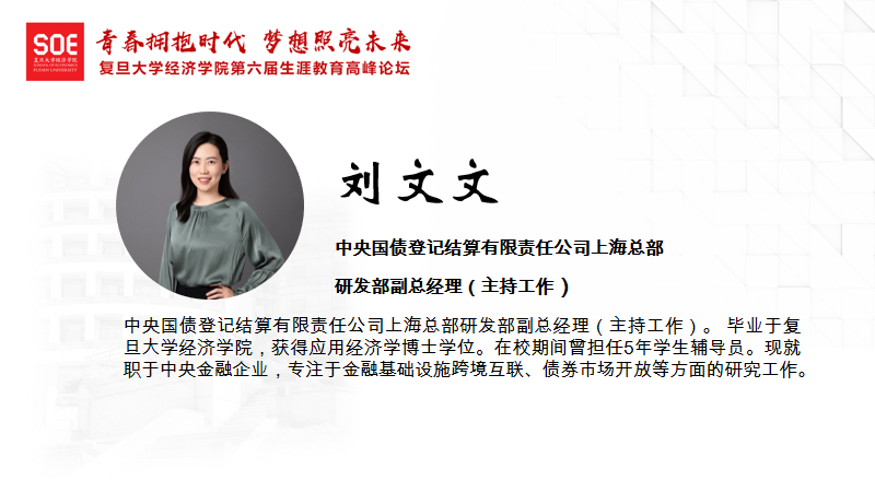 关于博士学历在金融行业择业的优劣以及疫情对债券市场的冲击等问题,刘文文老师认为对于一些有门槛的行业,博士学历是重要的,而其他行业博士学历不是必须的要求,所以读博的选择要出于本心,不要被博士头衔限制。同时,刘老师指出,在当前疫情下,债券市场整体交易量保持平稳,中国债券市场整体保持着向上的趋势,对于国内外市场都有很强的吸引力。