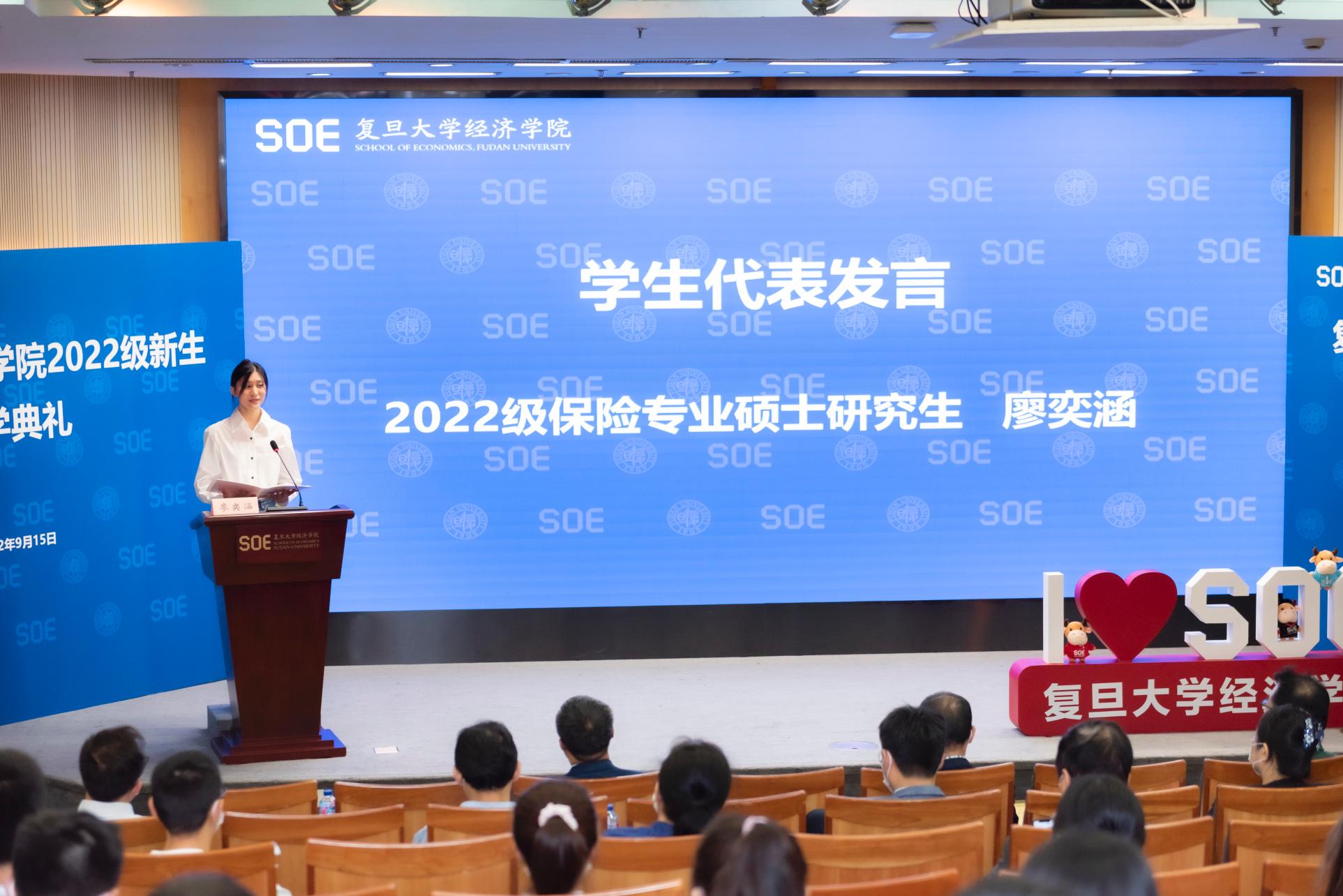 2022级保险专业硕士研究生廖奕涵同学讲述了自己选择复旦、选择经院的心路历程,励志将个人的学识和能力奉献社会。以下为发言全文: