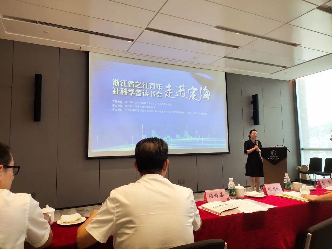 骆梅英部长对浙江省之江青年社科学者读书会走进舟山表示热烈欢迎,她向与会学者介绍了舟山的基本概况,希望专家学者能多多走进舟山,多多关注和挖掘舟山在历史人文、经济发展、社会治理等方面的课题研究。