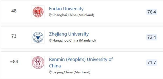 表现出色,两个学科均进入全球前五十名行列。经济学与计量经济学首次进入全球前50强,排名全球第48位,大陆排名第3;会计金融排名全球第48位,大陆排名第4。