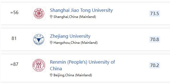 经济学与计量经济学Economics and Econometrics全球第48位,大陆排名第3首次进入全球前50强