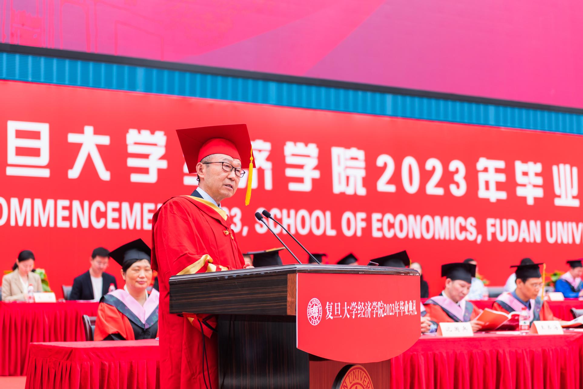 作为院长,我最近一直在思考予你们的临别赠言,也在思考经院在过往数载中所带给你们的东西。这几年,新冠疫情跌宕反复、国际形势深刻变迁、科技创新加快迭代、不确定性更加凸显,在变与乱的交织中,小到我们每个人的生活事业,大到国家经济社会发展、乃至全人类的前途命运都受到巨大影响。在历史的关键节点上,当日新月异作为外在的一种常态时,人们会不由自主地强调集体参与、抱团取暖、相互支持,个人发展与群体记忆被前所未有地关联起来。在这场时代洗礼中,那么属于复旦经院人的群体记忆是什么?