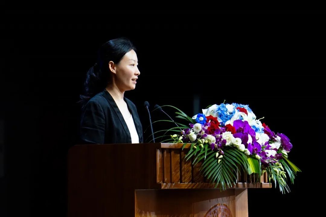 周晶老师作为教师代表发言。周老师以一个学生为例提问:“刷实习、刷科研,为了提升简历而进阶闯关,会失去什么?”她告诉新生们,同质化的竞争是不必要的,因为现实中的大家是由无限维度来组成的。她还说到,面对一个多维的世界,在保证学习主业的同时去“外卷”,去找寻自己所擅长的东西,才能找到人生的绳梯。