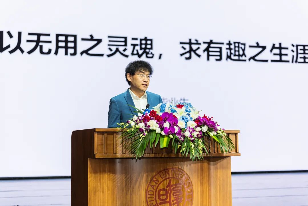 1991届校友、罗汉堂总裁、阿里巴巴可持续发展管理委员会主席、阿里巴巴集团战略规划总裁陈龙先生作为校友代表发言。他分享了自己的人生成长轨迹和复旦求学生涯,并指出人的经历造就自己。他告诉同学们,要做一个懂得自己生命轨迹的人,更要超越自己的人生轨迹。他期望同学们,要知道自己来自哪里,自己的路怎么走,以无用之灵魂,求有趣之生涯。