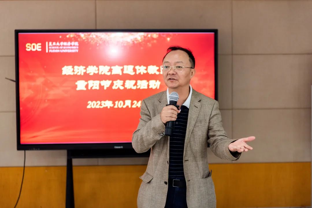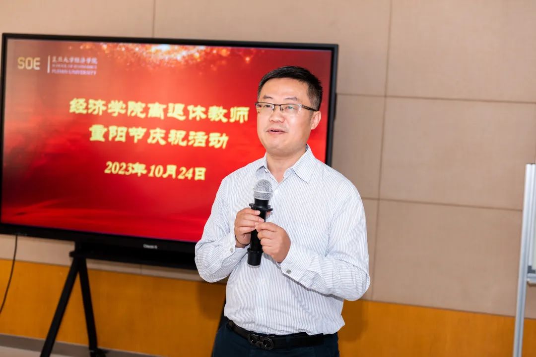 党委书记李粤江老师首先代表学院恭祝诸位退休教师重阳节快乐,对大家再次欢聚学院表达了热烈的欢迎。他表示,经院是一个幸福的大家庭,各项事业蒸蒸日上,学院的迅速发展离不开退休老师们的大力支持。他嘱咐老教师们注重健康,保持身心愉快,希望大家相伴相随,共同见证经院更加美好的未来。