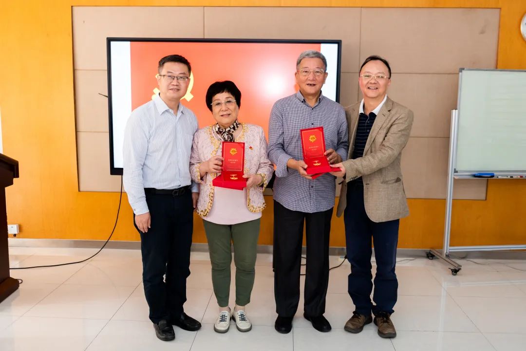 李粤江书记、周桂发处长向徐培华、胡涵钧、徐巧珍三位老党员颁发了2023年“光荣在党50年”纪念章。李志青老师代表御书屋