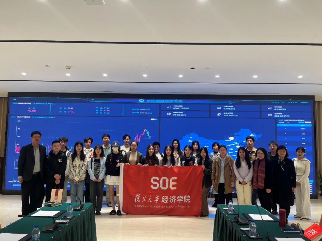 专业课程“能源与气候变化经济学”的20多位师生前往位于上海虹口的上海环境能源交易所参观学习。上海环境能源交易所(以下简称上海环交所)研发部周沁怡老师向师生们介绍了上海环交所的发展历程和区域及全国碳市场的主要成就,从国内碳市场的交易现状到全球碳交易动态、创新方向及面临的挑战,引发同学们对碳交易市场的深入思考。