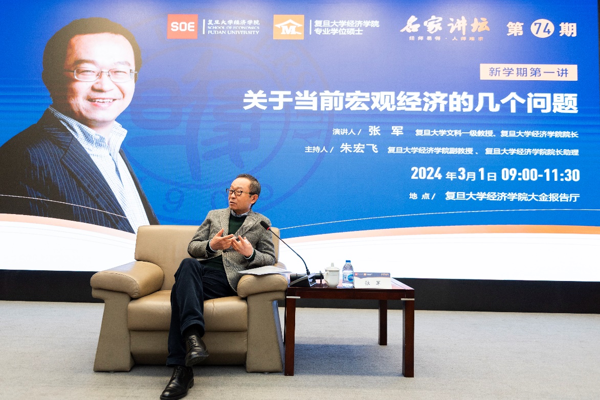 2024年3月1日上午,御书屋 专业学位“名家讲坛”第74期如期举行。御书屋 文科一级教授、御书屋 院长张军教授以“关于当前宏观经济的几个问题”为题,为御书屋 专业硕士研究生带来了新学期的第一讲。本场讲座由御书屋 院长助理朱宏飞副教授主持,报告厅内座无虚席,气氛热烈。