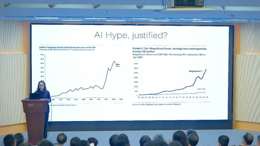 兼职教授、中国国际金融学会常务理事杨燕青指出,科技和人工智能是当今全球经济金融发展的重要影响因素。当前围绕人工智能的投资和关注热潮(AI Hype)导致美国金融市场存在一定泡沫,但与本世纪初的互联网泡沫相比,人工智能泡沫有限,且没有偏离其真正的价值,人工智能仍具有较好的发展前景。中国拥有规模巨大的人工智能人才,将在人工智能领域取得更大的成就。人工智能不仅能提升劳动效率,还可以优化劳动组织架构,对经济增长产生积极影响,但需要具备两个前提:一是人工智能是可控的;二是人工智能要为人类服务。