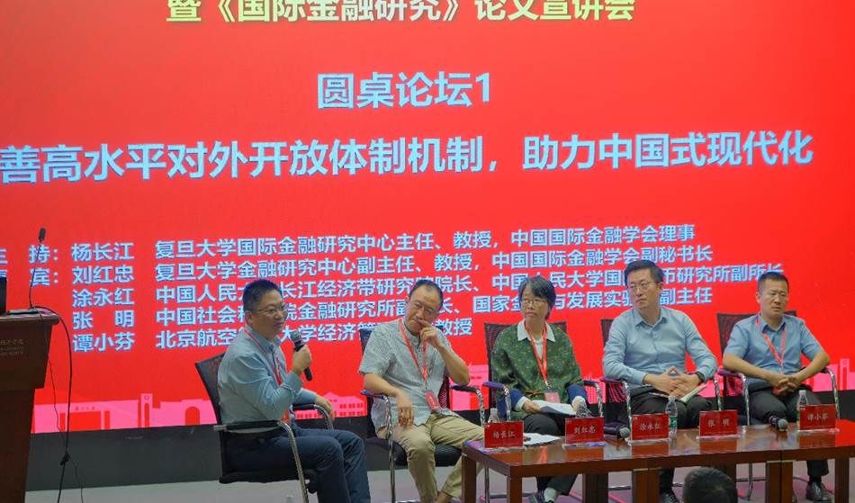 金融研究中心副主任、中国国际金融学会副秘书长刘红忠,中国人民大学长江经济带研究院院长、中国人民大学国际货币研究所副所长涂永红,中国社会科学院金融研究所副所长、国家金融与发展实验室副主任张明,北京航空航天大学经济管理学院教授谭小芬围绕论坛主题展开深入探讨。几位专家分别从为居民资产全球化配置提供制度保障、企业跨境人民币需求对推动人民币国际化的影响、加快服务业对外开放、全球因素影响下跨境资本流动大幅波动及其风险应对等分享了观点。