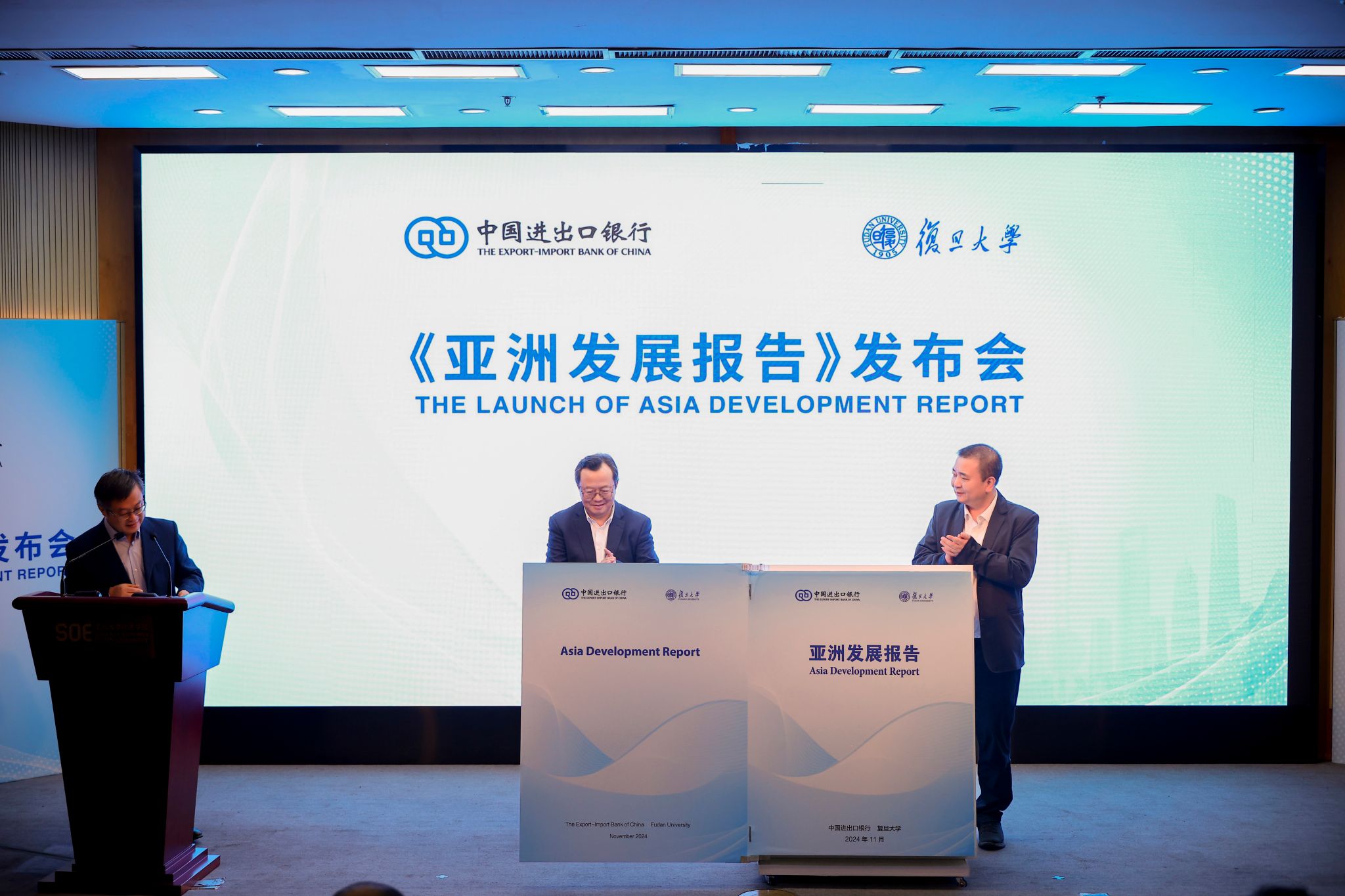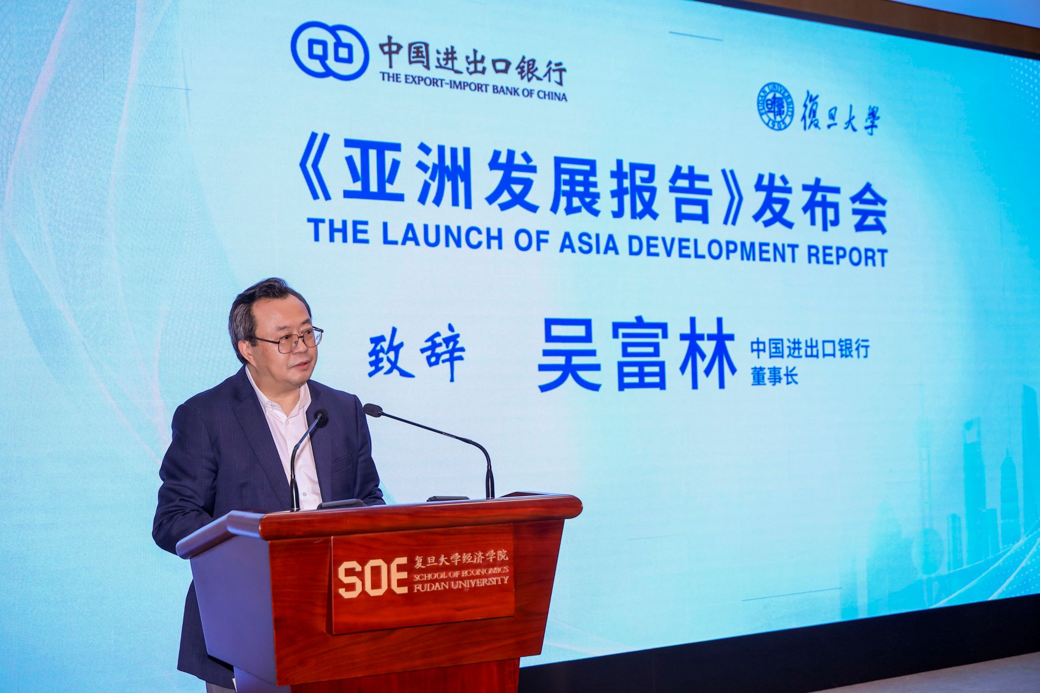 与进出口银行在上海联合发布《亚洲发展报告》。