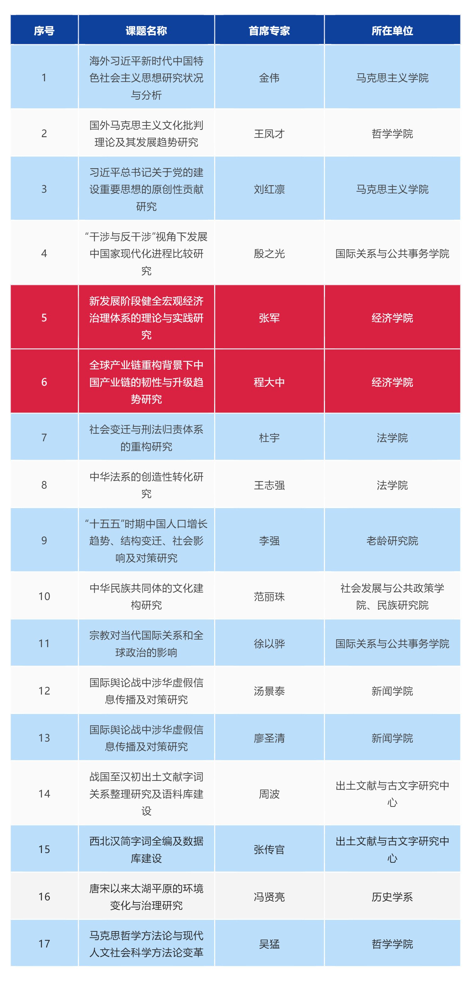2024年国家社科基金重大项目立项名单,按照公布顺序排列: