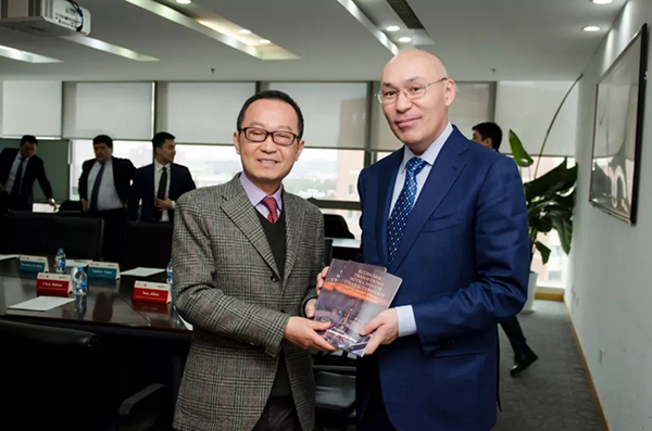 凯拉特·克林贝托夫主席先向与会人员介绍了阿斯塔纳国际金融区的基本情况以及中哈友谊的历史。凯拉特主席表示,在中亚国家中,哈萨克斯坦是与中国合作最紧密的国家之一,也是最早响应中国“一带一路”倡议计划的国家。在“一带一路”的宏大构思中,哈萨克斯坦有时会被形象地称为“搭扣”,即丝绸之路上最关键的国家之一。同时他也表示,“一带一路”是亚洲地区区域合作模式的新思路。在经济全球化的大背景下,世界各国在经济上的联系日益紧密。持续发展并不断深化的区域经济合作和区域经济一体化,则是经济全球化持续发展的客观要求和重要表现,也是区域经济合作模式升级换代的主要驱动力。