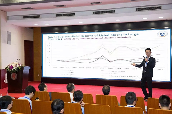 钱军通过比较中国与不同国家经济生产总值给出了中国股票市场发展的大致轮廓,先后阐释了旧的和新的中国经济增长模型及中国金融系统在经济增长中的角色。他表示,旧的经济增长主要依靠投资拉动型、劳动密集型和出口导向型。中国成功加入WTO之后,金融系统以传统大型国有银行为主,为国有企业提供资金支持;新经济增长主要依靠需求和创新推动,如由数据支持的金融平台等中国金融体系改革。其中,影子银行和新金融均为创新企业服务的新金融模式。他进一步通过比较不同国家股票市值和成交量,指出了在股票市值和成交量上,上海证券交易所已经超过日本成为第二大股票交易市场;然而在股票指数收益的买与卖上,中国股票交易所并不乐观。他结合实证分析发现,中国企业在股票市场上市后,业绩普遍下滑。对此,他解释道,中国企业上市制度不完善,退市制度不完善,大型投资效率低下。具体表现在企业在上市之前会加快赊卖来提高盈利,中国很少去除已经上市的表现不好的企业,中国企业比其他国家企业资产消耗多、现金流较少,未上市公司比上市公司增长快,大量的关联交易伴随着低现金流,公司管理低效率,低收益率,A股上市公司现金流相比较其他企业在2007-2008年下降,并且收益差距也在扩大。此外,包括利率水平下降但是无法推动企业经济效益提高,企业估值下降,中国企业波动率高但是收益较低等其他经济因素也会导致这种情况。他提出,中国经济增长和股市增长发展不均衡,非上市企业比上市企业盈利水平好,建议鼓励更多私有企业上市,实行更严格的监管,限制关联交易。