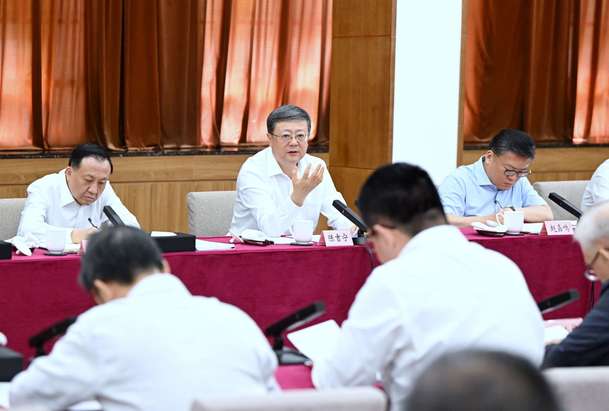 党委宣传部副部长高帆、华东政法大学知识产权学科带头人王迁、上海社会科学院经济研究所研究员詹宇波结合各自专业研究领域,开门见山、直入主题,就把握外部发展环境变化挑战,加强前沿布局、深化改革开放、参与规则创设、主动适应变革;坚持“四个放在”,深化“五个中心”建设战略定位;构建战略产业生态,营造一流营商环境,重塑城市空间结构,创新基层社会治理,数智赋能城市治理,激发文化创新活力,提升大都市圈核心竞争力,可持续发展与绿色低碳转型,深化城乡体制机制创新,知识产权保护与涉外法治体系建设、国际消费中心城市建设等谈了思路想法,提出有针对性的意见建议,既有宏观层面的战略思考,也有微观层面的实施建议。陈吉宁认真倾听记录,就共同关心的问题开展互动讨论,对各位专家围绕全市重点工作,深入基层调研、提供真知灼见表示感谢,要求相关部门认真研究吸收,为更好思考谋划未来一个时期上海经济社会发展提供高质量智力支撑。
