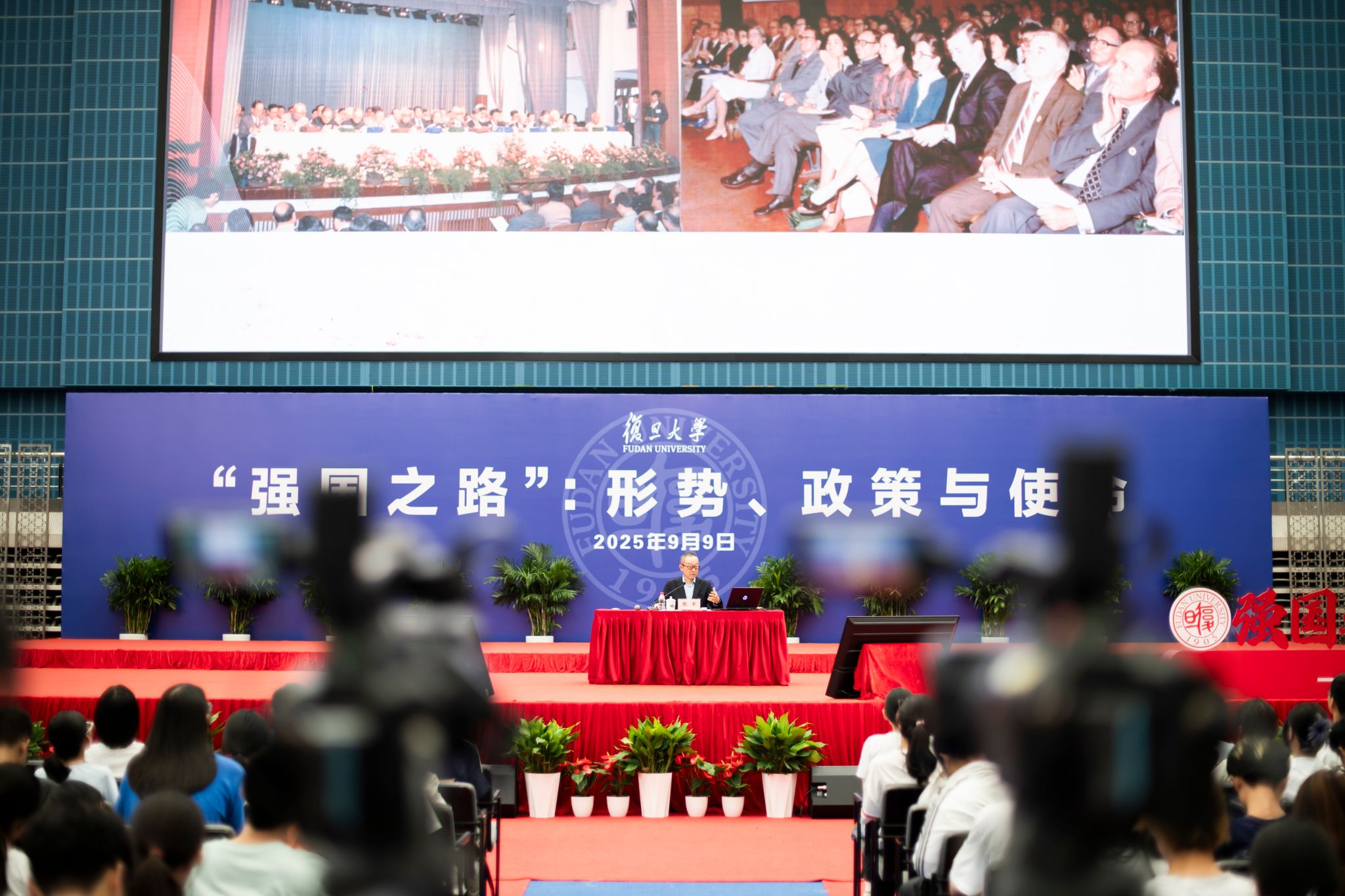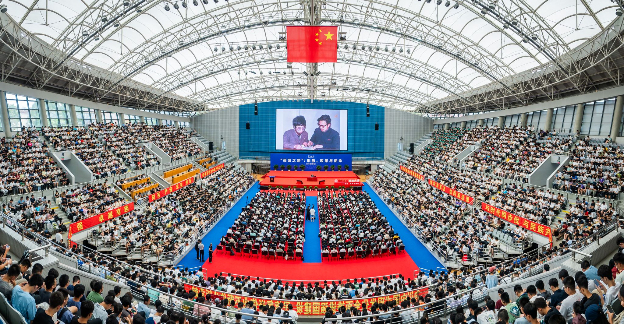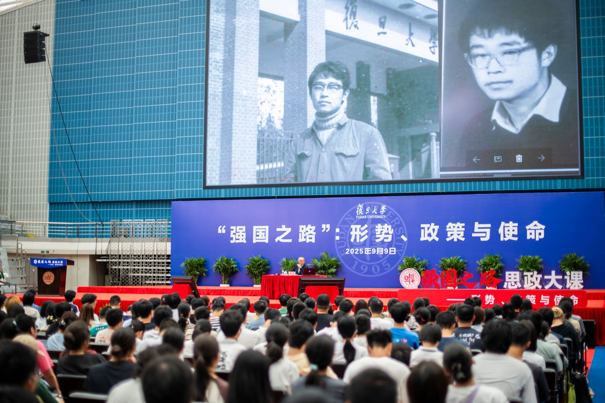 院长、中国经济研究领域的著名学者张军在正大体育馆,面向3000余名2025级本科新生,深情回顾他与复旦44年的故事,以《复旦何以在我心中》为题,为这群“新复旦人”带来新学期“强国之路”思政大课的第一讲。校长、中国科学院院士金力作开篇导读,副校长周磊主持。