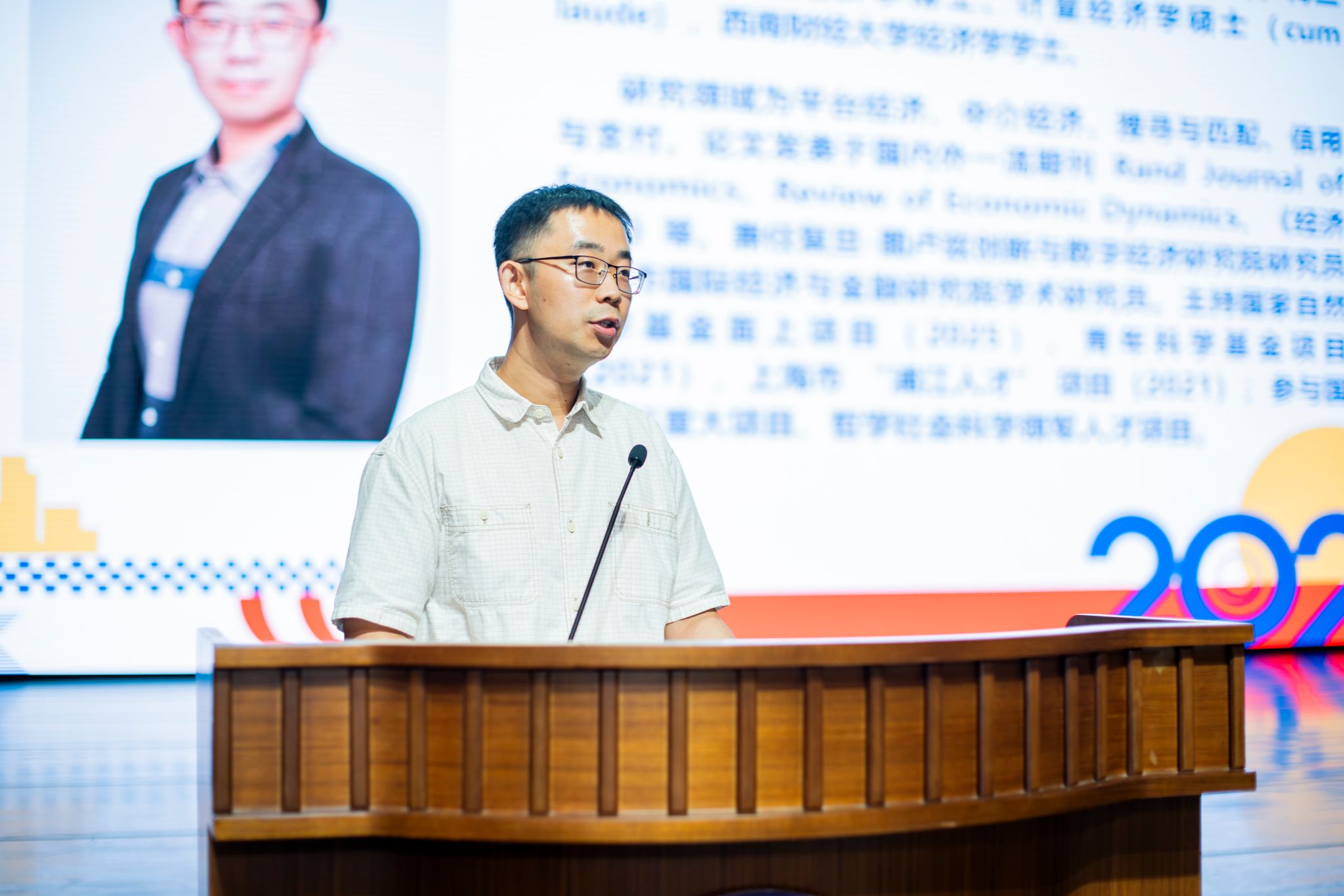 世界经济研究所副教授胡博老师作为教师代表发言。胡老师以“经济学的力量”为主题,向同学们阐述了经济学在AI时代的持久价值。他指出,经济学为我们提供了理解世界的“坐标系”,核心是“选择”“均衡”“制度”与“激励”。他希望同学们在学习中掌握严谨的逻辑、审慎的实证精神和开阔的交叉创新的视野,获得穿越经济周期的迷雾、洞见世界本质的能力,在任何领域都能绽放精彩的人生。