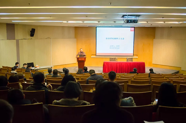 2018年教职工大会顺利召开。本次大会由济学院张军院长主持,党政领导班子介绍了本学期分管工作的工作思路、工作目标和工作重点。全院教职工参加了会议。