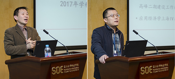 科研、学科与人才工作由院长助理王弟海教授和寇宗来主任进行了简要介绍。他们先汇报了2017年学科建设的成效和存在的不足;再重点汇报了2018年的计划和工作重点及完善学科建设的具体措施。
