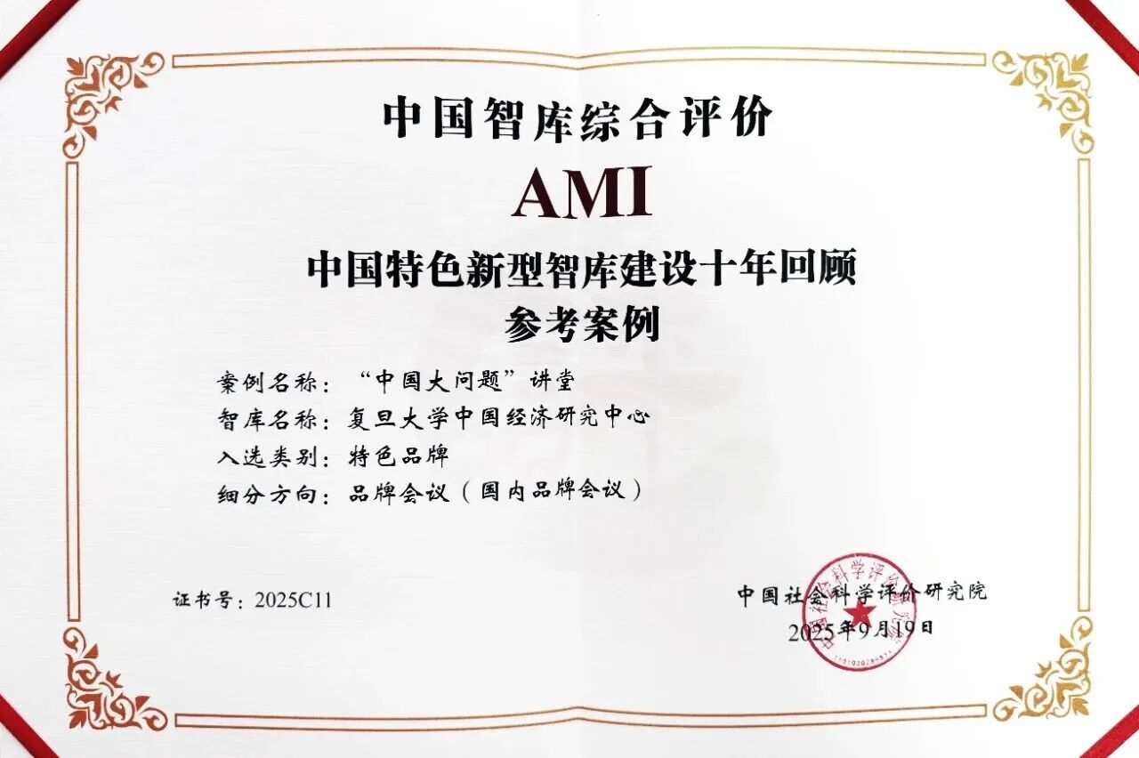 中国经济研究中心(RICE)入选“中国智库综合评价2025年AMI智库”名单,品牌会议“‘中国大问题’讲堂”荣获“中国特色新型智库建设十年回顾参考案例”。
