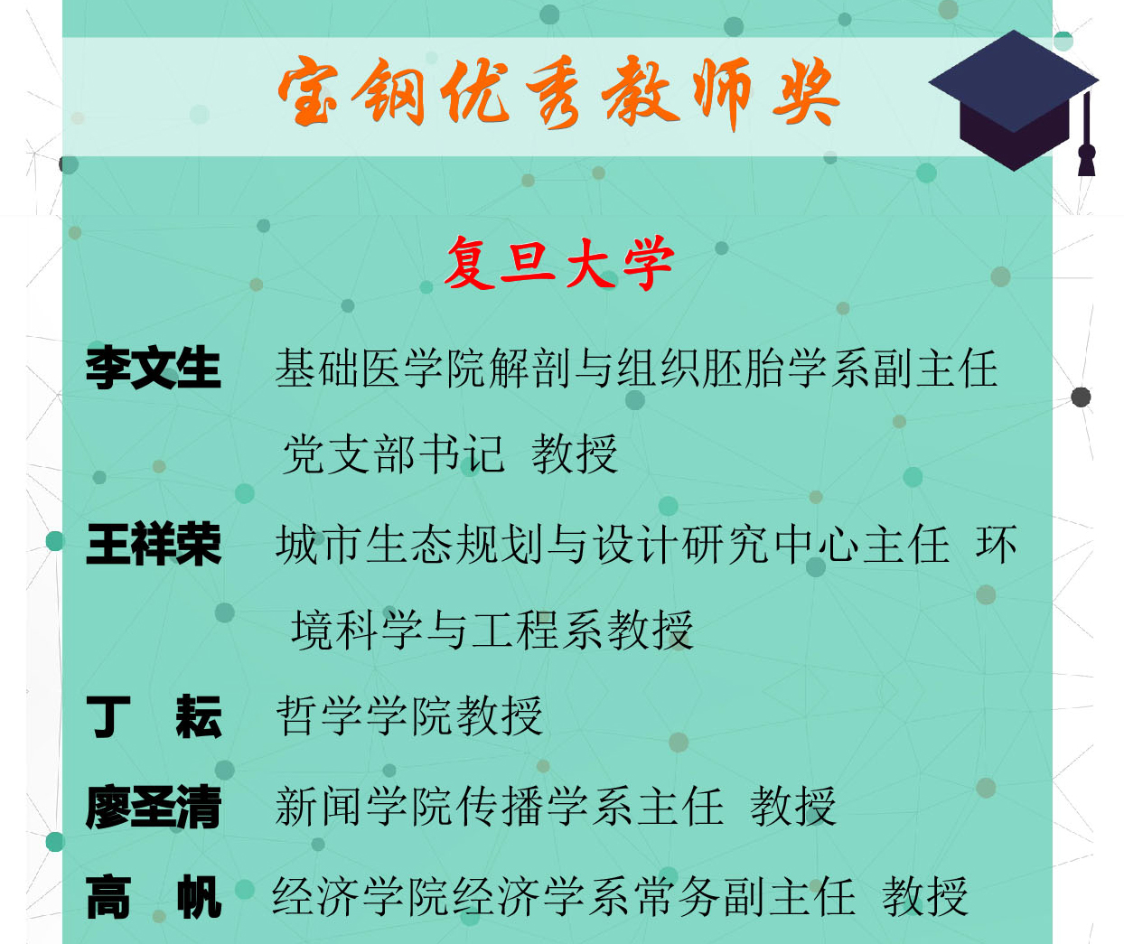 共有5名教师获“宝钢优秀教师奖”。