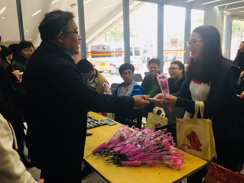 献血结束之后,陈书记贴心地给献血的同学送上鲜花和巧克力,并亲切地与他们聊天。陈老师关切地询问同学们的身体状况和学习生活情况,还聊到了自己之前的献血经历,让刚献完血稍显紧张的同学们感到十分亲切和放松。