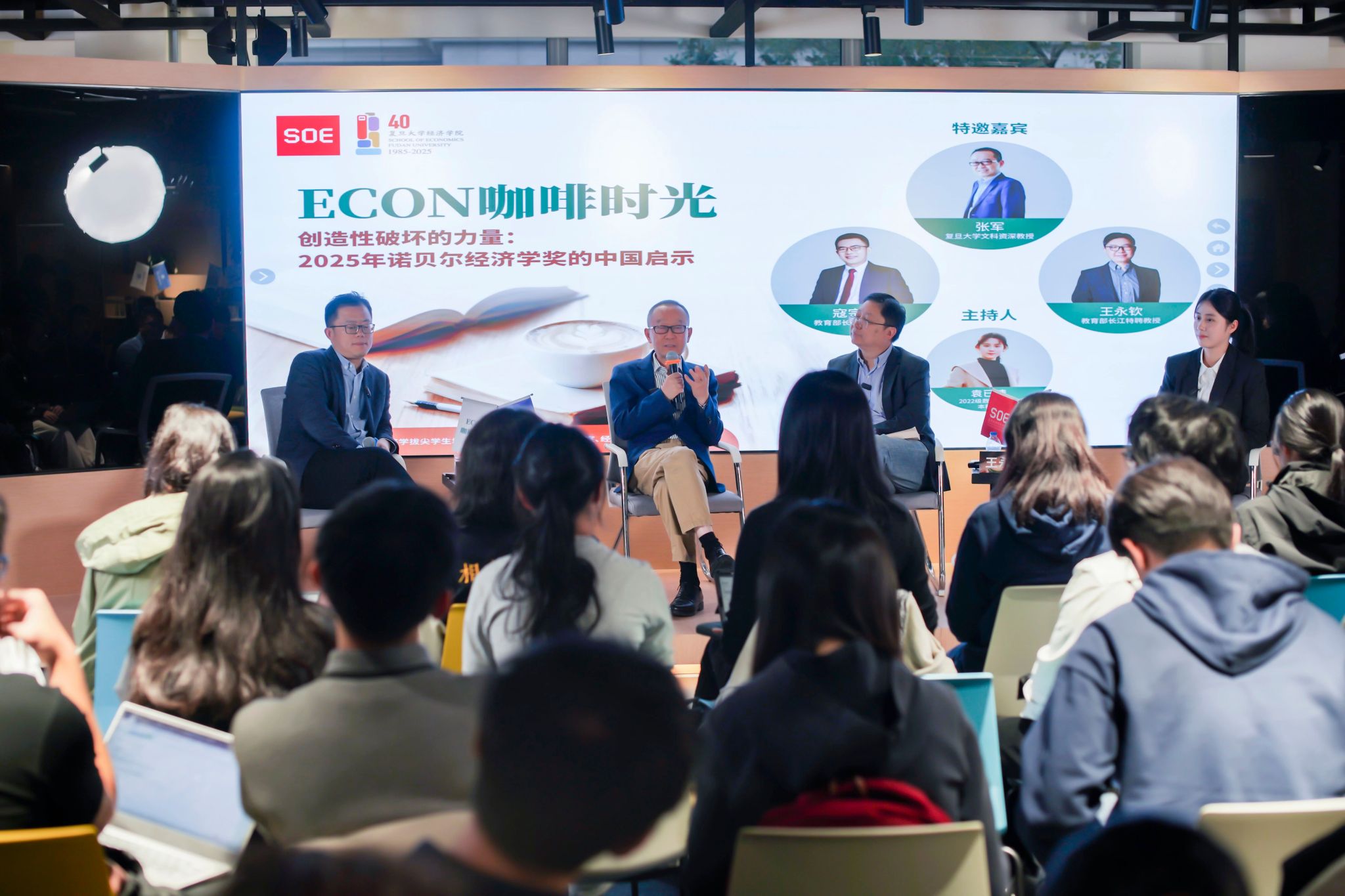 首次推出的“咖啡时光”主题沙龙在温馨雅致的氛围中温馨开启。作为专为本科生量身打造的特色学术活动,本次沙龙打破传统课堂的单向传授模式,以“咖啡为媒、思想为核”,聚焦2025年诺贝尔经济学奖核心主题“创新”,深度契合中国当下创新驱动发展的关键战略。活动特邀著名经济学家、国家级人才、复旦文科资深教授、御书屋
