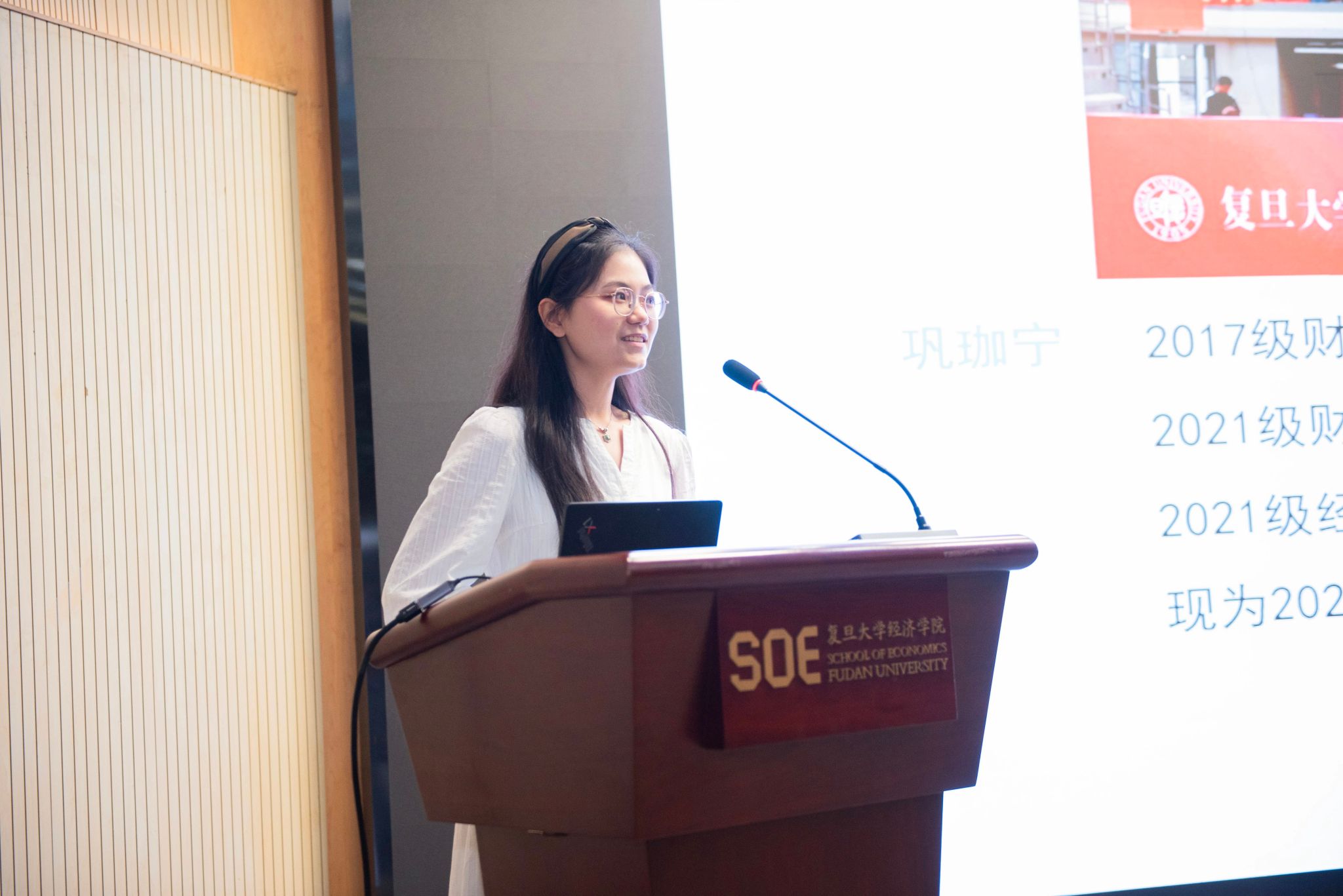 国际金融学院金融专硕的应琪,分享了“学思践悟在财政”的成长故事。她提到,财政学课程让她读懂财税与国家发展、社会运行的深层逻辑,财务管理、国际税收等课程知识成为实习、竞赛的核心助力;专业课程压力适中,让她有充足时间参与社会实践、学术竞赛、学生工作,在知行合一中提升综合能力,从政务实习到比赛获奖,财政学专业知识始终是她的核心底气。
