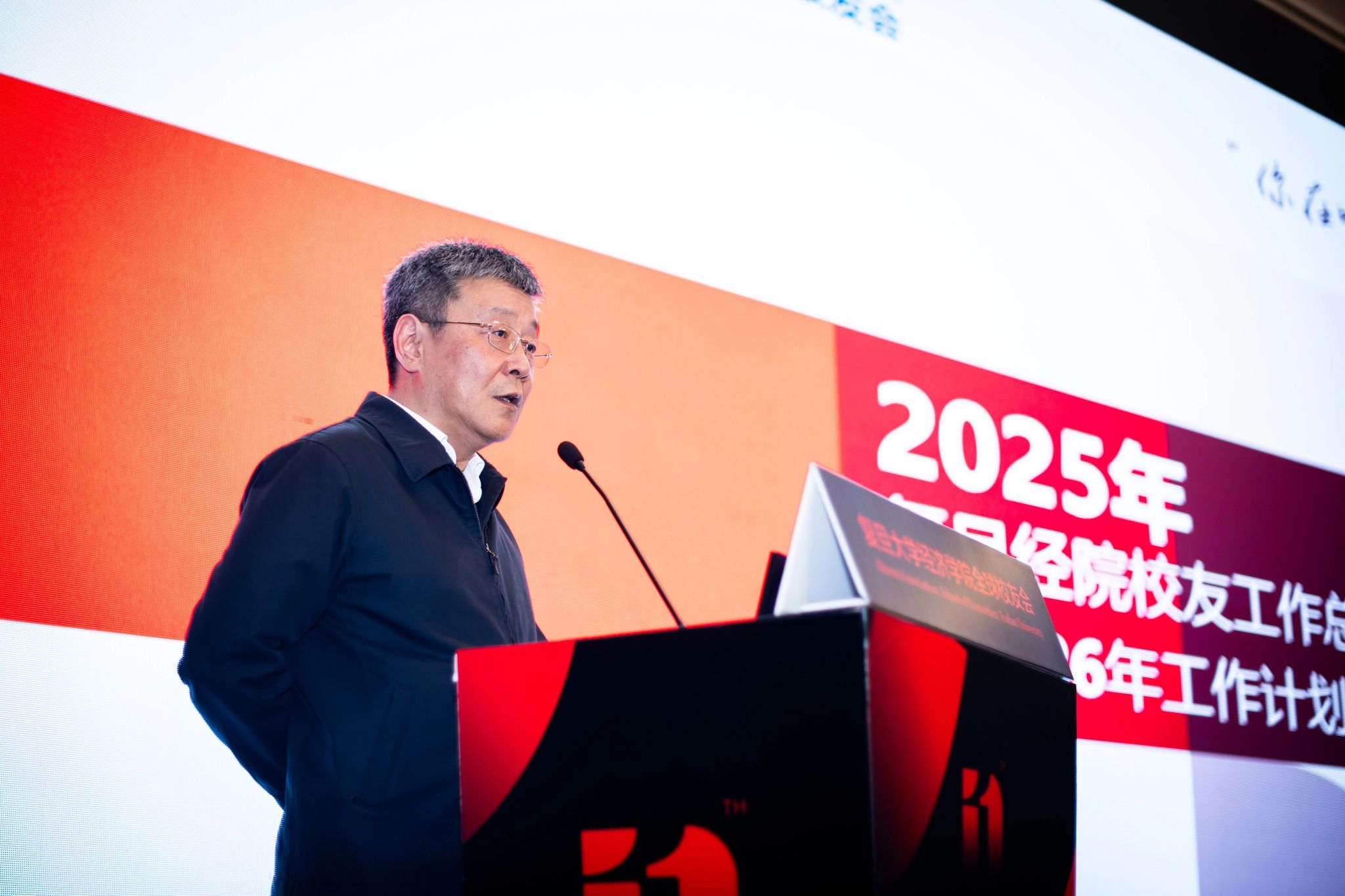杨德红代表会长团队对2025年校友会工作进行了全面汇报,并对2026年进行了展望。2025年,校友会工作以“提质增效”为核心,组织了40余场海内外高影响力活动;新增温州和意大利联络处,全球联络处增至38个;全球网络跨区域联动更加常态化。依托复旦首席经济学家论坛、香港论坛、外滩智本汇等品牌矩阵,学院的社会影响力持续提升。在赋能学院发展方面,全年落实捐赠资金2000余万元,并获多项珍贵实物捐赠。展望2026年,校友会将重点围绕“夯实基础、做强载体、强化协同、专业深耕、提升品牌”五大方向,把广泛的校友联络进一步转化为专业组织力量。