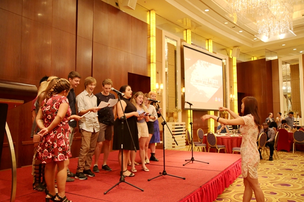 学生们是欢送会的主角,10名来自不同地区、学校、背景的学生代表上台发言,讲述了一个月来的有趣见闻和所得所学。