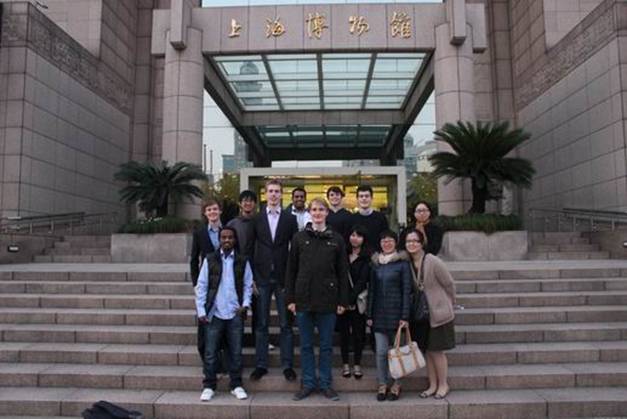 结束了通用汽车的参观,大巴载着同学们驶向了下一目标——上海博物馆。从浦东到人民广场,喧嚣热闹的景象又逐渐出现,似乎在告诉大家,市中心到了。上海博物馆是一座大型的中国古代艺术博物馆,上圆下方的造型寓意中国“天圆地方”之说,也是上海标志性的建筑。适逢“从巴比松到印象派:克拉克艺术馆藏法国绘画精品展”在上博展出,珍贵的油画精品让学生们驻足流连。不过对于来自世界各地的留学生来说,更让他们感兴趣的是青铜器、陶瓷器、书画等文物,这些展品向他们打开了另一个世界,似在诉说古代中国的兴盛繁荣,亦可略窥文人墨客的洒脱飘逸,博物馆贴心的免费讲解器服务也帮助留学生们更好地了解这些藏品。