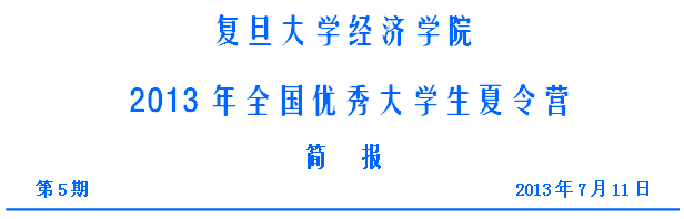 当日下午,在经过选拔笔试及8场学员报告后,经济学夏令营营员考核全部结束。在4天时间里,来自全国20多所知名高校的50余位学员汇聚复旦,切磋学术,探索真知,展示出他们出众的学术潜力,赢得了老师们的一致好评。