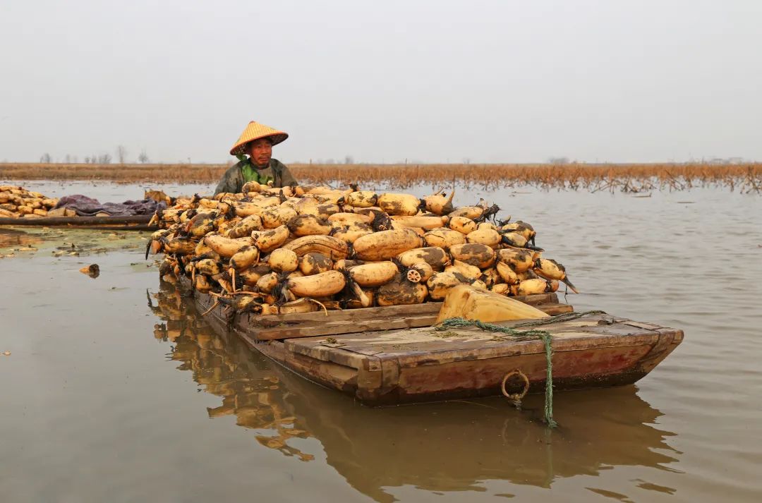 ▲安徽宿松:莲藕进入丰收季,农民采藕供应春节市场。图片来源:视觉中国