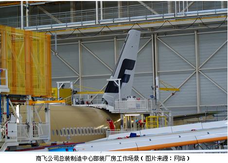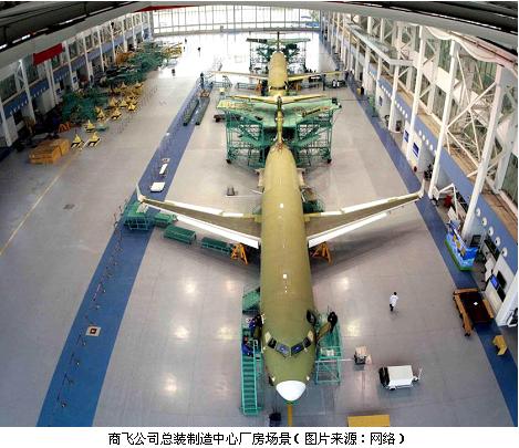 中国商飞公司总装制造中心占地约4000余亩,规模庞大。从南到北,分别是办公区域及复合材料、部装、总装三大厂房。从东到西,分别是C919、ARJ21及规划中新型宽体客机专属厂房。