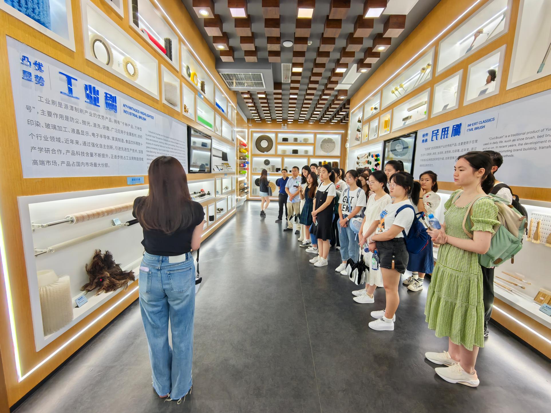 师生调研团队依次参观了源潭刷业小镇的小镇客厅及安徽环美刷业公司、梅城镇潘铺村“四宜”特色村镇和天柱山镇茶庄村乡村旅游度假区,并开展了劳动教育。