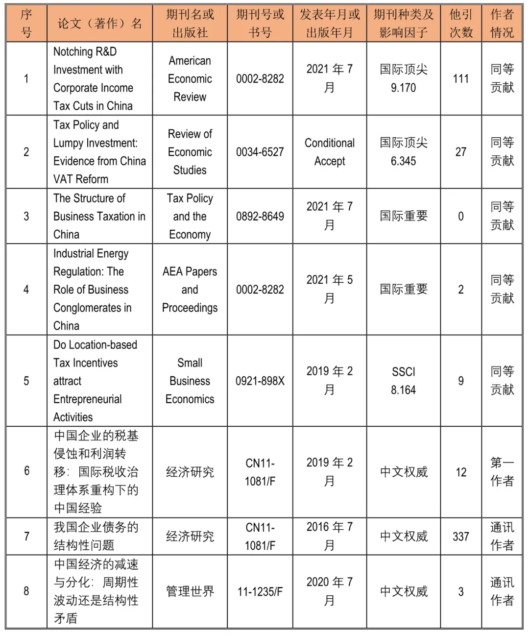 获奖者在上述领域内的研究成果广泛发表于国内外顶级权威期刊,成果见于在American Economic Review、《经济研究》、《管理世界》等国内外权威期刊,获奖者主持国家自然科学基金优秀青年基金项目和青年科学基金项目。