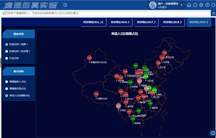 本科生财政学课程的教学中,其核心功能在于对不同税制模式下我国增值税收入和负担省域分布和转移情况的可视化仿真模拟。学生可通过实验加深对税收转嫁与归宿、增值税制度与改革,以及政府间分税规则等重要财政学知识点的理解,并在对我国增值税制改革的政策效应开展多维度模拟分析的过程中提升研究和创新能力。