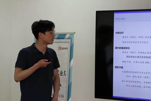 刘一恒同学首先分析研究动机和现状:目前的医疗共同体建设以及产生的问题,中国公立医院占主导的情况的特殊性。
