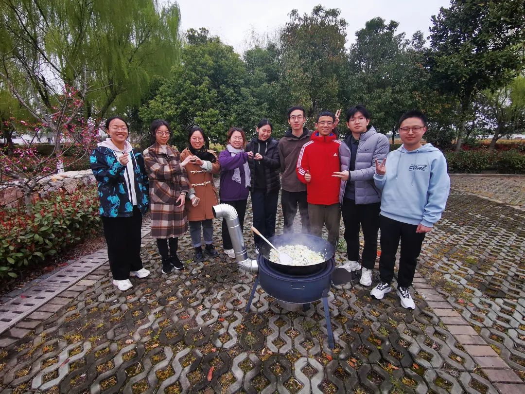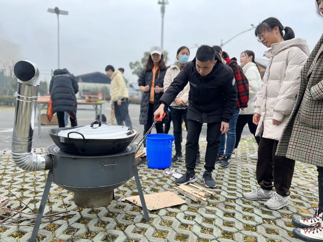 ▲经济数理班的同学们亲手生火制作焖肉饭