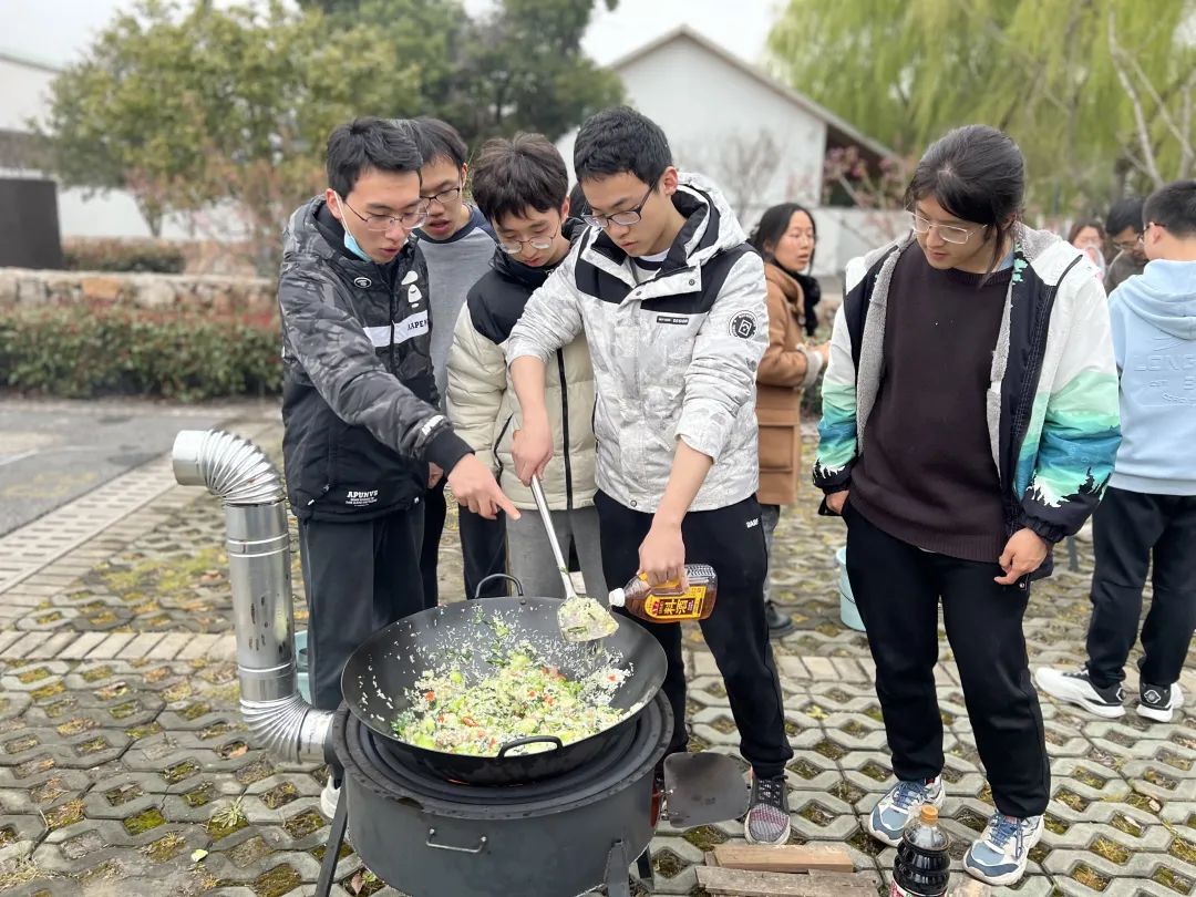 “河田交错,风景秀丽。”来自21级经济学系的张未这样评价。鲜香嫩滑的水煮鱼,温热暖胃的炖豆腐......在当地村民的热情款待下,张马村以当地美食给同学们留下了初印象。餐后,同学们分组参观考察村庄。2015年,张马村引进了500亩集四季蔬果采摘、水上森林、湿地公园、野生动物保护区为一体的上海市首家开放式的农村公园——蓝美庄园。在庄园老师傅的带领下,同学们学会了识别各种野菜。“谷谷丁可清热解毒、消肿散结;马兰头可作蔬菜食用,凉拌清凉爽口;金花菜以热油猛炒,味道鲜美,也可生煸。”采完野菜,同学们分组制作晚饭:搬锅、搭灶、生火、切菜、淘米、倒油下锅,精诚协作下,焖肉饭大功告成。