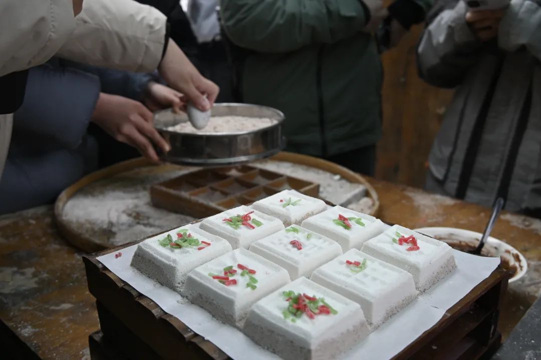 ▲2021级金融保险班在当地村民指导下制作四喜风糕