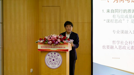 石磊教授主讲的“当代中国经济”课程先后入选国家级一流本科课程、国家级课程思政示范项目。在本次研讨会上,石磊教授以“课程思政的宽度与难度”为题作了专题报告。报告指出,育人意义上的“思政”应宽不应窄,任何课程都有课程思政的可融入空间。石磊教授在课程思政教学实践中做到“四个融通”:专业领域与相关学科打通、历史与现实打通、中西方相关文献打通、理论与实践打通。他认为要着重解决全流程思政难的问题,专业上要分类指导,课程上要分类评估,内容上要精准分类设计,教师要重新审视自我。